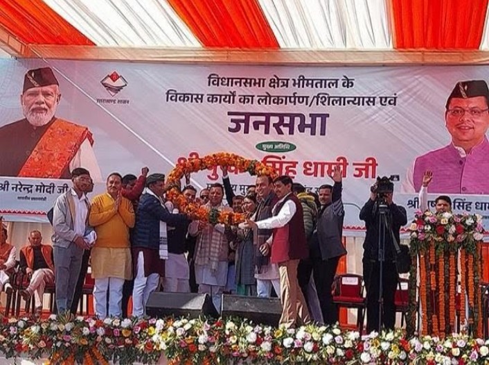 सीएम धामी ने 70.73 करोड़ की लागत से 8 विकास योजनाओं का लोकार्पण किया। इसमें 4.53 करोड़ से सेनिटोरियम से अल्मोडा मार्ग तक भवाली बाईपास भाग-1 का डामरीकरण, 11.62 करोड़ से भवाली-सेनिटोरियम से नैनीबैंड तक भवाली बाईपास पार्ट-2 सुधारीकरण, 7.95 करोड़ से भीमताल बाईपास मोटर मार्ग का सुधारीकरण, 16.62 करोड़ भीमताल-खुटानी -चांफी-परमपुरी-धानाचुली पंचेश्चर मोटरमार्ग सुधारीकरण का निर्माण कार्य, 19.48 करोड़ से 50 बैड क्रिटिकल केयर यूनिट का निर्माण, 8.43 करोड़ से लाल बहादुर शास्त्री महाविद्यालय हल्दूचौड में पुस्तकालय, बहुउददेशीय हॉल का निर्माण, 1.46 करोड़ से निराश्रित गौवंश के लिए ग्राम पुछडी में गौशाला निर्माण, 61.38 लाख से रा.उ.मा.वि. जाडापानी भीमताल में पुस्तकालय कक्ष, कम्प्यूटर कक्ष एवं विज्ञान प्रयोगशाला कक्ष का लोकापर्ण किया।