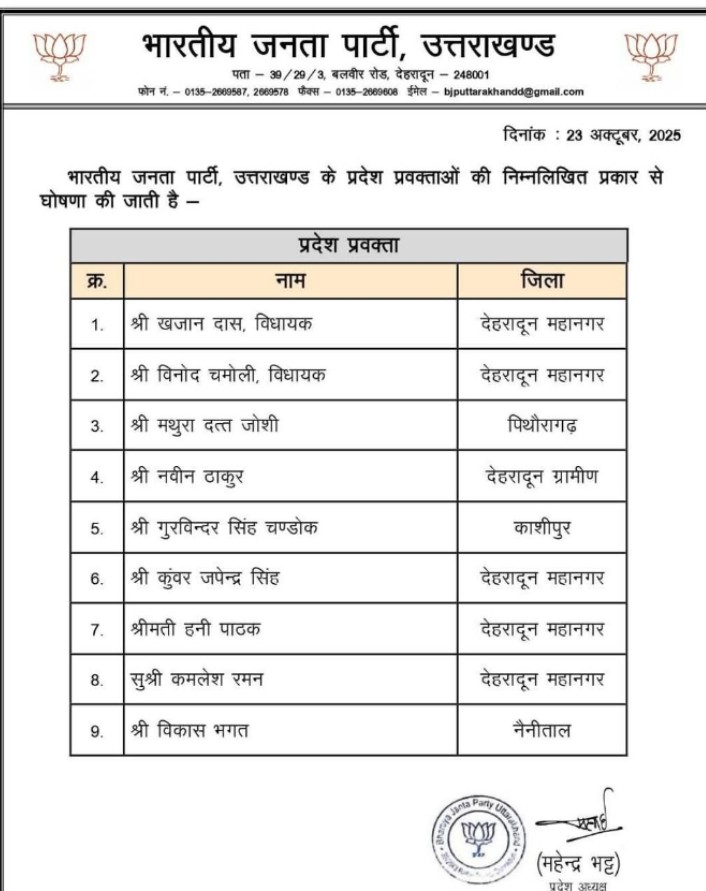 राज्यउत्तराखंडएक्सक्लूसिवराजनीति उत्तराखंड, प्रदेश अध्यक्ष महेन्द्र भट्ट ने भाजपा उत्तराखंड के प्रदेश प्रवक्ताओं की घोषणा की By nrnews - October 23, 2025 0 14 Share Facebook Twitter Pinterest WhatsApp Tumblr