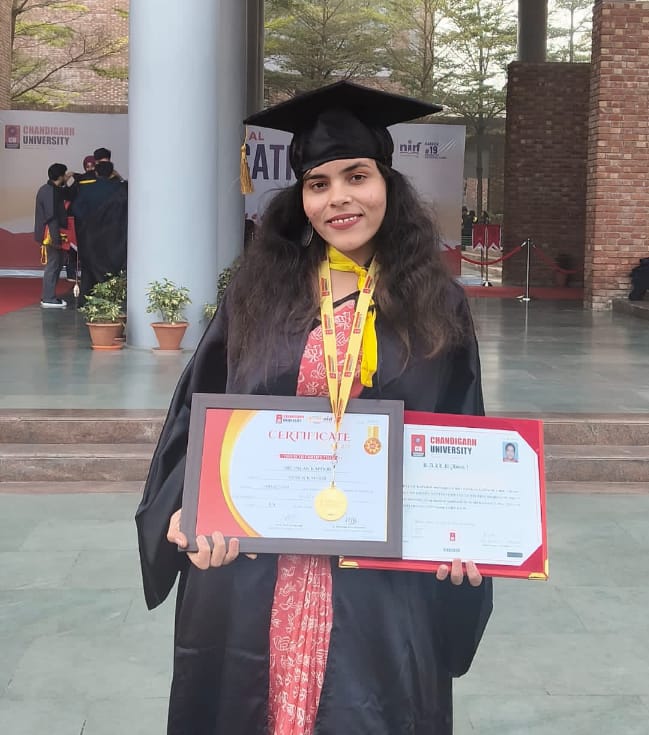 महानगर की होनहार छात्रा कु. पलक कपूर ने चंडीगढ़ यूनिवर्सिटी के एनुअल कन्वोकेशन 2025 समारोह में बी. ए. एलएलबी पाठ्यक्रम में उत्कृष्ट शैक्षणिक प्रदर्शन करते हुए यूनिवर्सिटी के वाइस चांसलर द्वारा गोल्ड मेडल प्राप्त कर, परिवार एवं नगर का नाम गौरवान्वित किया है। कु. पलक कपूर ने अपनी इस उपलब्धि का श्रेय अपने माता-पिता, गुरुजनों एवं संस्थान के मार्गदर्शन को दिया। इस अवसर पर परिवारजनों, शिक्षकों एवं शुभचिंतकों ने उन्हें बधाई देते हुए उज्ज्वल भविष्य की शुभकामनाएं दीं। बता दे कि पलक कपूर के पिता पंकज कपूर इंडियन हर्ब्स कंपनी मे मेनेजर के पद पर कार्यरत हैं। उनका मिलनसार व्यक्तित्व सभी को अपनी और आकर्षित करता है। पंकज कपूर एक समाजसेवी भी है जो लोगों की मदद को हमेशा तत्पर रहते हैं।
