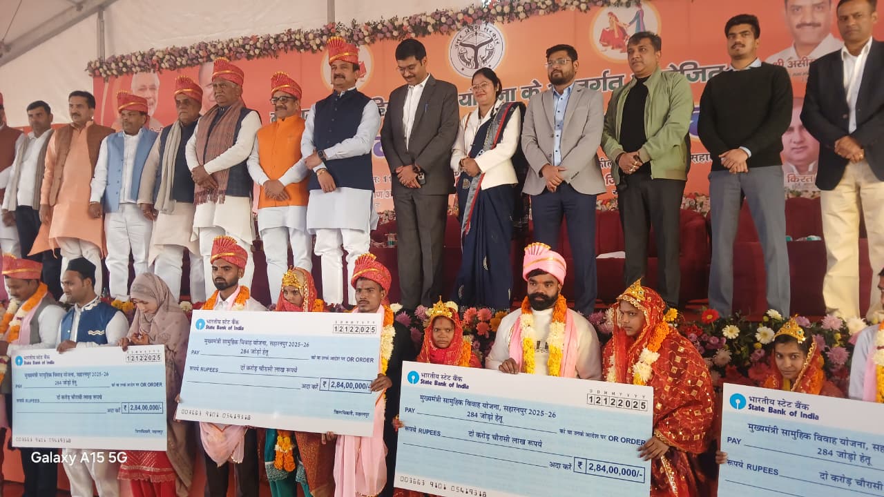 सहारनपुर। मुख्यमंत्री की अपेक्षा के अनुरूप वित्तीय वर्ष 2025-26 में नव निर्गत शासनादेशानुसार ऑनलाइन प्रणाली के आधार पर जिलाधिकारी श्री मनीष बंसल के कुशल दिशा निर्देशन में “मुख्यमंत्री सामूहिक विवाह योजना” के अन्तर्गत जनपद में 180 हिन्दू जोड़े एवं 64 मुस्लिम जोड़े कुल 244 जोड़ों का विवाह उनके रीति-रिवाज के तहत सामूहिक रूप से जनपद के महाराज सिंह डिग्री कॉलेज फील्ड जनता रोड़ में सम्पन्न कराया गया।