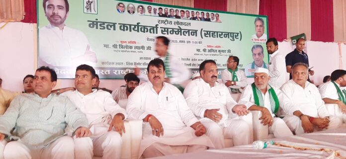 सम्मेलन को संबोधित करते हुए त्रिलोक त्यागी ने कहा कि सहारनपुर में भी रालोद बहुत मजबूती से आगे बढ़ रहा है। त्रिलोक त्यागी ने कहा कि राष्ट्रीय लोकदल की ताकत बढ़ रही है क्योंकि कार्यकर्ताओं का सम्मान रालोद में सर्वोपरि है। कर्मठ कार्यकर्ताओं के कारण ही रालोद पंचायत चुनाव में ताकत दिखाएगा। विशिष्ट अतिथि कैबिनेट मंत्री अनिल कुमार ने कहा कि आपका दुख दर्द हमारा है सबको न्याय मिलेगा। इस अवसर पर राष्ट्रीय लोकदल खेल प्रकोष्ठ के राष्ट्रीय अध्यक्ष चौ नीरपाल सिंह,थाना भवन विधायक अशरफ अली,पूर्व मंत्री योगराज सिंह, खेल प्रकोष्ठ के प्रदेश अध्यक्ष दीपक तोमर,मंडल अध्यक्ष प्रभात तोमर,उत्तराखंड प्रदेश अध्यक्ष सिद्धान्त चौधरी,वरिष्ठ नेता विनय प्रधान,सहारनपुर जिलाध्यक्ष शाहजमां खान, मुजफ्फरनगर जिलाध्यक्ष संदीप मलिक,शामली जिलाध्यक्ष वाजिद अली,महिला प्रदेश उपाध्यक्ष दीपमाला चौधरी,युवा जिलाध्यक्ष मेरठ प्रशांत चौधरी, जिलाध्यक्ष हरिद्वार शारिक चौधरी,मुकेश चौधरी,राजदीप,धर्मेंद्र,सुनील आदि ने भी चौधरी चरण सिंह की विचारधारा पर प्रकाश डाला।