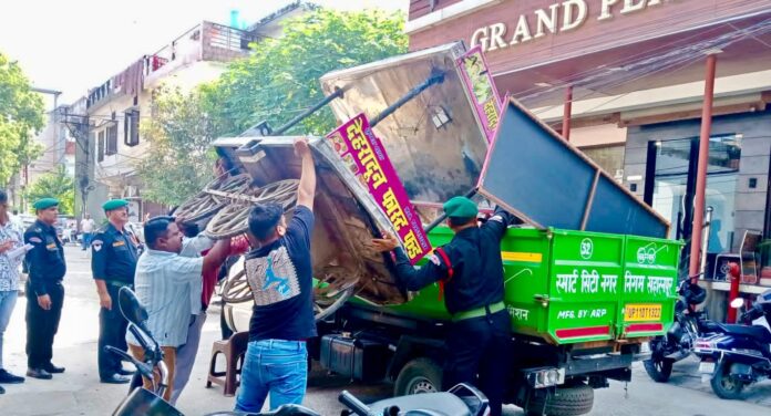 सहारनपुर।रिपोर्ट। रमन गुप्ता) दीपावली सहित विभिन्न पर्वो तथा जैन समाज की रथयात्रा को दृष्टिगत रखते हुए नगरायुक्त शिपू गिरि के निर्देश पर नगर निगम द्वारा शहर के विभिन्न क्षेत्रों से अतिक्रमण हटाया गया। थाना कोतवाली पुलिस भी साथ रही। इस दौरान सड़क पर फैलाकर रखा गया सामान भी जब्त किया गया और अनेक अतिक्रमणकारी दुकानदारों से करीब साढे़ तीन हजार रुपये जुर्माना भी वसूला गया। टैªफिक पुलिस की सहायता से अव्यवस्थित रुप से इधर-उधर खड़ी एक दर्जन गाड़ियों के चालान भी किये गए। नगरायुक्त शिपू गिरि के निर्देश पर अतिक्रमण प्रभारी सुधीर शर्मा के नेतृत्व में पुल खुमरान से जोगियान पुल तक सड़कों से अतिक्रमण हटवाया गया। अभियान के अंर्तगत स्थायी व अस्थायी अतिक्रमण हटवाया गया तथा अव्यवस्थित रूप से सड़क पर खड़ी गाड़ियों के भी चालान किये गए। इस दौरान अनेक दुकानों के बाहर सड़क पर फैलाकर रखा गया सामान जब्त किया गया। जिसमें काउंटर, फलों की खाली टोकरियां, लोहे के जाल व लोहे के बने हुए स्टैंड, लोहे के खंभे और तीन ठेलियां जब्त की गयी। पांच दुकानदारों से साढे़ तीन हजार रुपये जुर्माना वसूला गया। अतिक्रमण प्रभारी सुधीर शर्मा ने बताया कि ट्रैफिक पुलिस की मदद से तीन मोटरसाइकिल व 11 कारों का मौके पर चालान कराया गया। अभियान में ट्रैफिक सबइंस्पेक्टर अमित तोमर भी शामिल रहे। इसके अलावा जैन समाज के रथोत्सव को ध्यान मंें रखते हुए रायवाला से रानीबाजार होते हुए हलवाई हट्टे तक सड़कों पर लटके बैनर व सड़क पर फैली तिरपाल आदि भी हटवाई गयी। इस दौरान प्रवर्तन दल प्रभारी कर्नल एच बी गुरुंग, संपत्ति सुरक्षा अधिकारी हरिप्रकाश कसाना व प्रवर्तन दल के जवान मौजूद रहे।