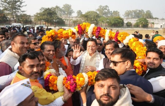 हरिद्वार,हरिद्वार में गुरुकुल कांगड़ी हेलिपैड पर आज किसानों ने मुख्यमंत्री पुष्कर सिंह धामी का उत्साहजनक स्वागत किया। किसानों, जनप्रतिनिधियों तथा स्थानीय अधिकारियों ने फूलों की माला पहनाकर, पुष्पवर्षा कर और गन्ना भेंट कर मुख्यमंत्री का अभिनंदन किया। उपस्थित किसानों ने सम्मान स्वरूप उन्हें “किसान पुत्र” की उपाधि से सम्मानित भी किया।