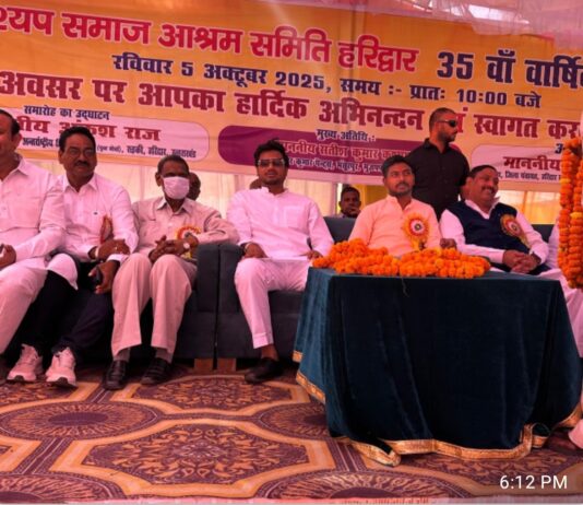 हरिद्वार श्री कश्यप समाज आश्रम का 35 वा अखिल भारतीय सम्मेलन समारोह का उद्घाटन हिन्दू महासभा के प्रदेश अध्यक्ष अंकुश राज ने किया
