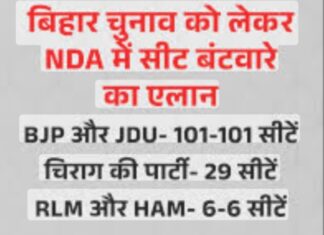 बिहार विधानसभा चुनाव 2025 से पहले राष्ट्रीय जनतांत्रिक गठबंधन (एनडीए) ने अपने सहयोगी दलों के बीच सीटों का बंटवारा आधिकारिक रूप से...